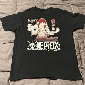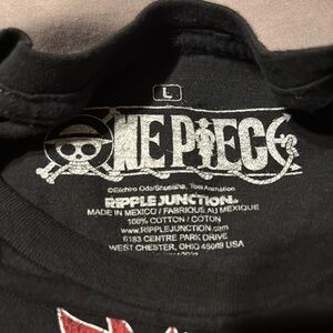Black t-shirt featuring a bold anime graphic design in red and white. Ripple Junction. Size large. Good used condition.