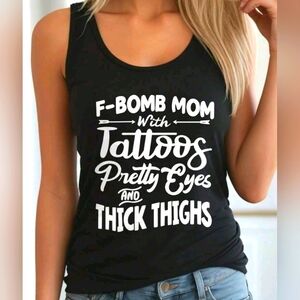 Black Graphic Tank Top 'F-Bomb Mom' Size XL