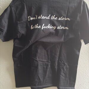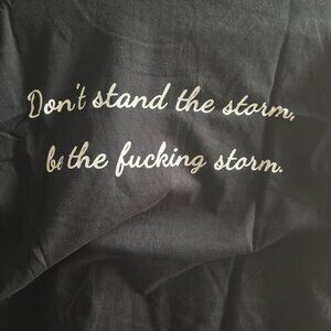 Stand out with this unique black graphic T-shirt featuring a nature-inspired front design with vibrant trees and the words “Natural Roots Vibes.” The back makes a bold statement with the powerful quote: “Don’t stand the storm, be the f**ing storm.”*