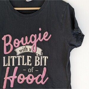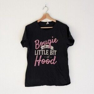 Black Graphic Tee T-shirt Bougie with a Little Bit of Hood Women's Size Large