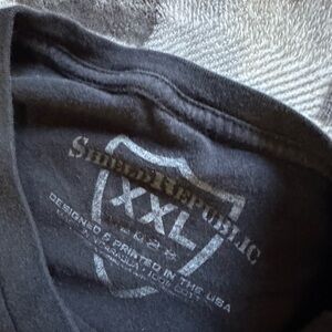 Embrace style with this black graphic tee featuring a bold purple design. Perfect for casual outings.