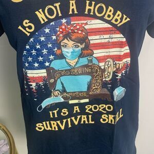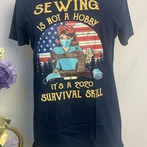 Black Graphic Tee Size L "SEWING IS NOT A HOBBY IT'S A 2020 SURVIVAL SKILL"