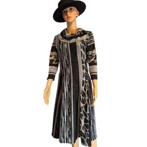 Black Gray Animal Print Fit & Flare A Line Midi Dress, Women's Size M