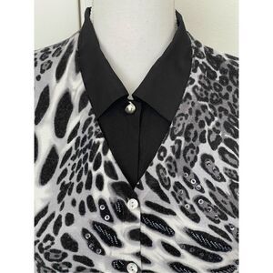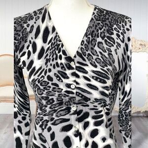 Black & Gray Beaded Cheetah Print Button Down Cardigan Pierri New York Sz M