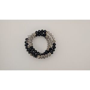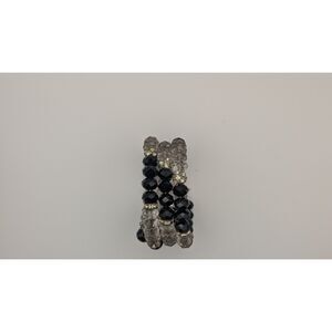 Black & Gray Crystal Beaded Stretch Bracelet with Rhinestone Spacers Fashion