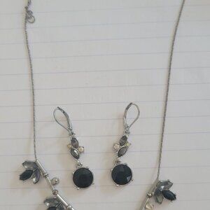 Lovely set! No stones missing, no tarnishing! The earrings have a nice clasp that closes and the necklace extends so that you can adjust it for 3 different sizes.