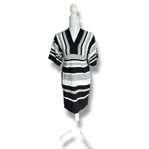 Black Gray and White Striped Sweater Women's Dress Size Small. Features a stylish V-neck and comfortable fit. NWT.