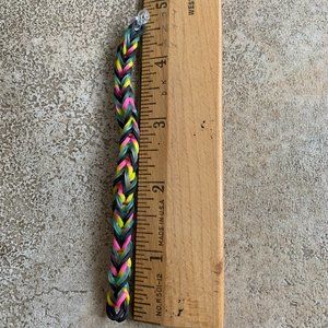 This is handmade with Rainbow Loom rubber bands and it is a stretchy bracelet.