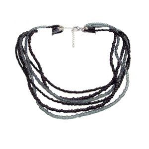 Black Grey Necklace Silver Tone Vintage Six Strand Seed Bead
