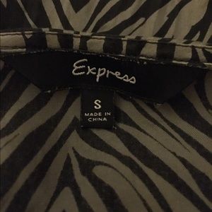 Express 95% silk and 5% spandex silk dress. Black and grey striped pattern. I'm a regular size six, 5'7" and it is not form fitting. Work maybe 5 times. Hand wash. Perfect fall/winter dress with a cardigan and tights. Can be dressed up for parties or business casual for work. Square neck with short sleeves.