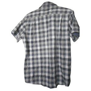 Black Grey white checked Lee Sz L cotton blend button front shirt short sleeve