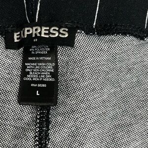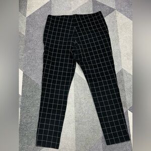 Stylish black stretch pants with a white grid pattern.
