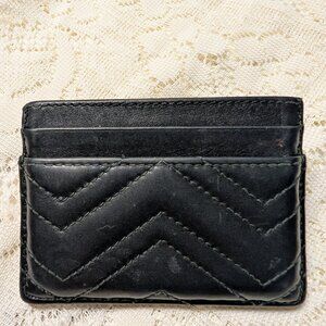 Black Gucci quilted leather card holder wallet, 4 inches wide, 3 inches tall, GG logo, excellent nearly new condition