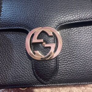 Black Gucci interlocking GG leather crossbody/shoulder bag