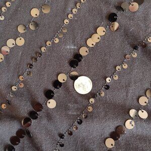 Extremely soft tank. Has a mesh underlayer. Diagonal rows of sequins. I got this as a hand-me-down, washed but never wore this out. Have since realized scoop necks don't suit me. When photographing, I found some small white marks (deodorant possibly?) on the back of the shirt as pictured. Will probably wash out but wanted to disclose. No other flaws.