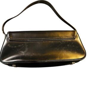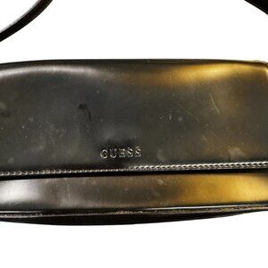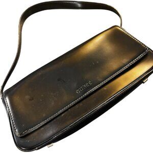Keywords: Y2K shoulder bag, Guess purse, black leatherette bag, 2000s handbag, vintage Guess, minimalist bag, small shoulder bag, retro Guess bag, baguette purse