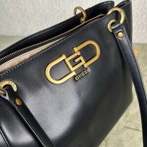 Black Guess Tote Purse with Gold Details