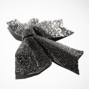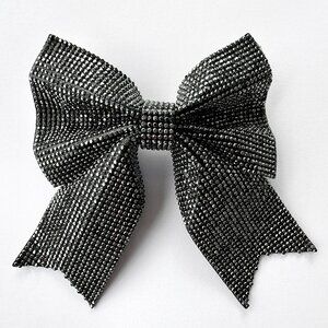 Black gunmetal sparkly rhinestone bow barrette hair clip accessory.