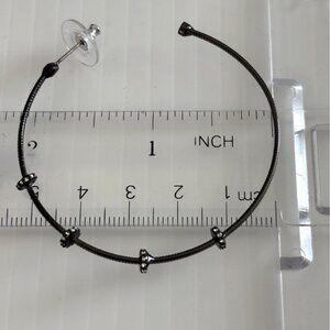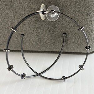 Black Gunmetal-Tone Hoop Earrings With Decorative Beads & Crystals 2-Inch Diamet