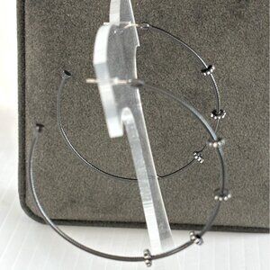 These sleek black gunmetal-tone hoop earrings feature decorative beads and crystals, adding a modern and sophisticated touch to any outfit. Lightweight and versatile, they seamlessly combine contemporary style with subtle elegance, making them a standout accessory.