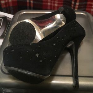 Black suede H by Halston stilettos. Purchased from Nordstom. I have non skid pads on the bottom that can easily be removed. Make an offer.