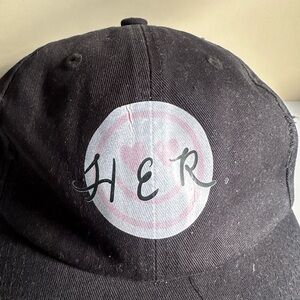 Trendy black baseball cap with a HER logo. Ideal for everyday style and leisure!