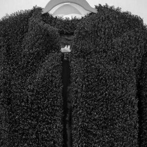 This H&M jacket in black offers comfort with its soft, lightweight design, making it ideal for versatile styling.