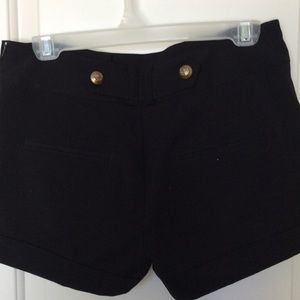 Black HM shorts size 6, zips up the side, gold anchors buttons, 3" inseam , gently used
