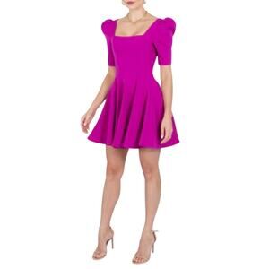 Black Halo Bambi Mini Dress - Size 6. Features puff sleeves, a pleated skirt, and convenient pockets in a stunning orchid hue. Chic and versatile for any occasion.
