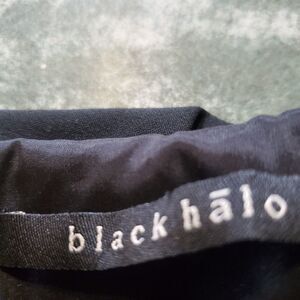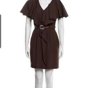 Black Halo Black Ruffled Overlay Crepe V Neck Mini Sheath Dress Career sz 6 missing the belt.
