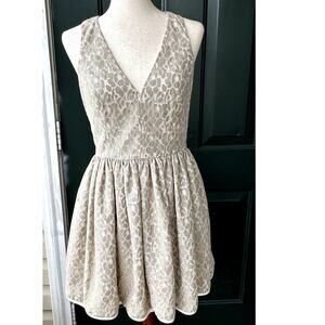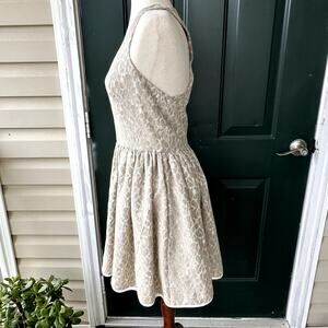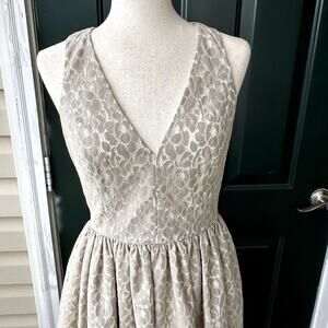 Black Halo "Bree" Sz 8 Lace Halter Fit and Flare Mini Cocktail Dress in Latte
