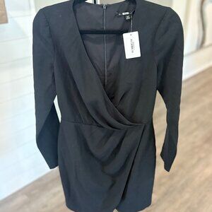 Suiting details and a split front create office yet sexy vibes for this Black Halo faux wrap dress.