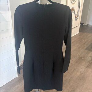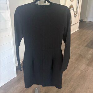 Black crepe (62% Polyamide, 32% Viscose, 6% Elastane). Sheath. Long sleeves. V-neckline. Hidden back zipper closure. Partially lined.