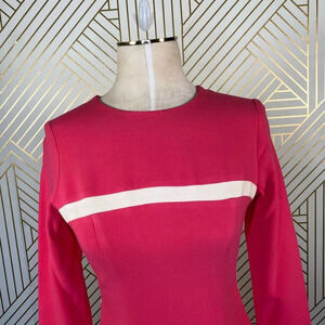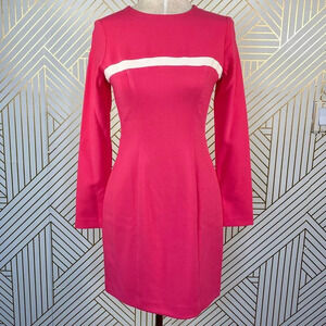 Black Halo Two-tone panels bring mod style to this shift dress. Crew neckline. Long sleeves. Hidden back zip. Lined.