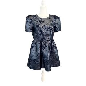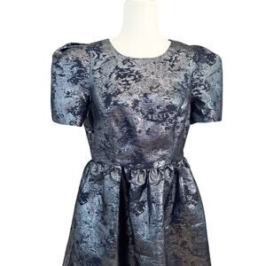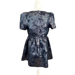 black halo, mini dress, cocktail dress, puff sleeve, metallic dress, evening dress, party ready, designer mini, blue dress, occasion wear, chic short dress