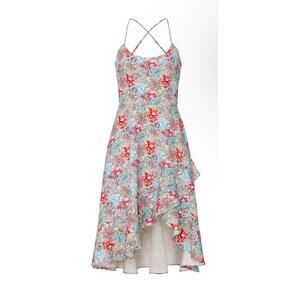 Delicate spaghetti straps suspend this flowy and feminine floral ruffle dress from Black Halo.