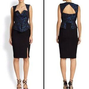 Black Halo Dress Womens Sz 10 Blue Brocade Peplum Wiggle Gabardine Cut Out Back
