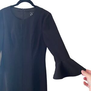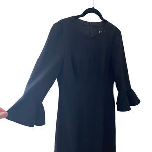 Black Halo EVE Size 4 Gown Maxi Dress Bell Half Sleeve Front Slit Long