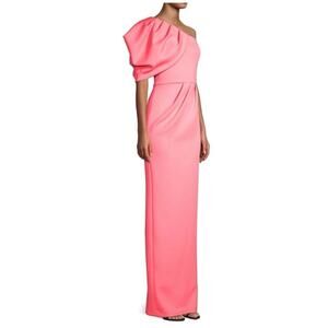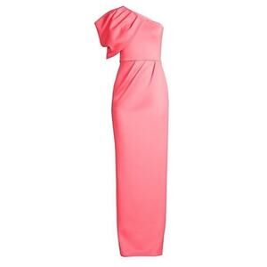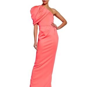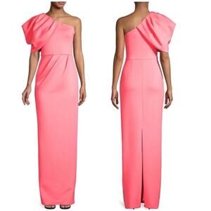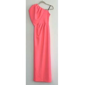 Black Halo Egan One-Shoulder Column Gown Neon Coral Sz 0