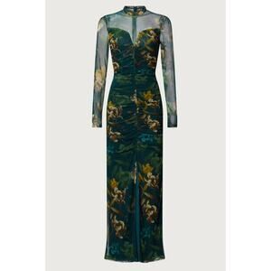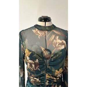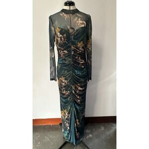 Black Halo Eve By Lauren Berman Wendy Floral Ruched Sheer Maxi Dress Gown Sz 12