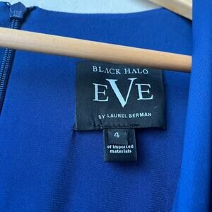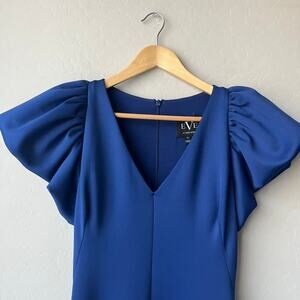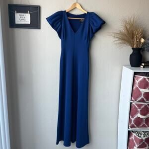 Black Halo Gown Navy Blue Puff Sleeve A-Line V-Neck Cocktail Maxi Dress Size 4