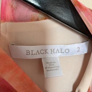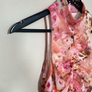 Black Halo Kobe Ruched Floral-Print Jewel Neckline Sleveless Bodycon Dress