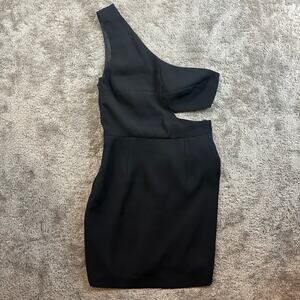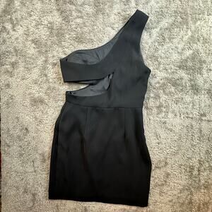 Black Halo Kylie One Shoulder Cutout Mini Sheath Cocktail Dress Size 8 M Medium