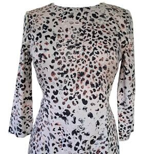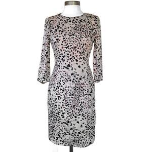 Black Halo Leopard Print Sheath Dress Beige Neutral Workwear Pencil Dress