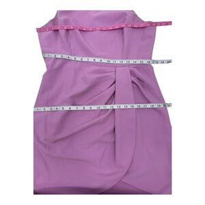 Gorgeous and modern Black Halo Brett Drape Mini Dress in a soft lilac hue. Features elegant draping, a sleeveless silhouette, hidden back zipper, and a flattering tailored fit. Perfect for weddings, cocktail parties, spring events, or date nights. Made from high-quality stretch crepe for a sleek look and comfortable wear.