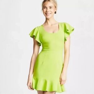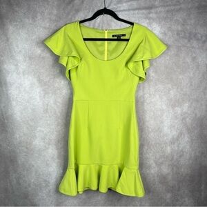Black Halo Lynn Flutter Sleeve Ruffle Mini Dress In Lime Green Women's Size 2