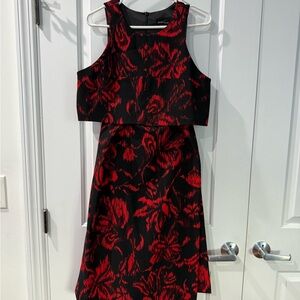 Stylish dress by Black Halo. Features a striking red and black pattern. Ideal for chic events.