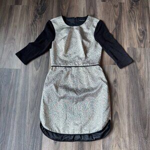 Black Halo Savona Metallic Gold Black Sleeve Mini Dress Size 4 sparkle sequin