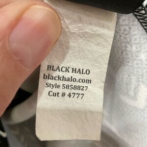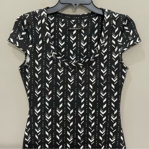 Black Halo Sheath Dress Sz S Black & White Geometric Print Pattern Stretch Knit
