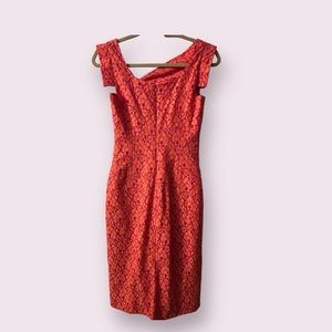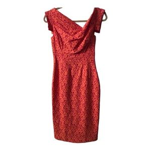 Striking asymmetrical dress with intricate lace design. Sleeveless and form-fitting. Ideal for standout moments.
